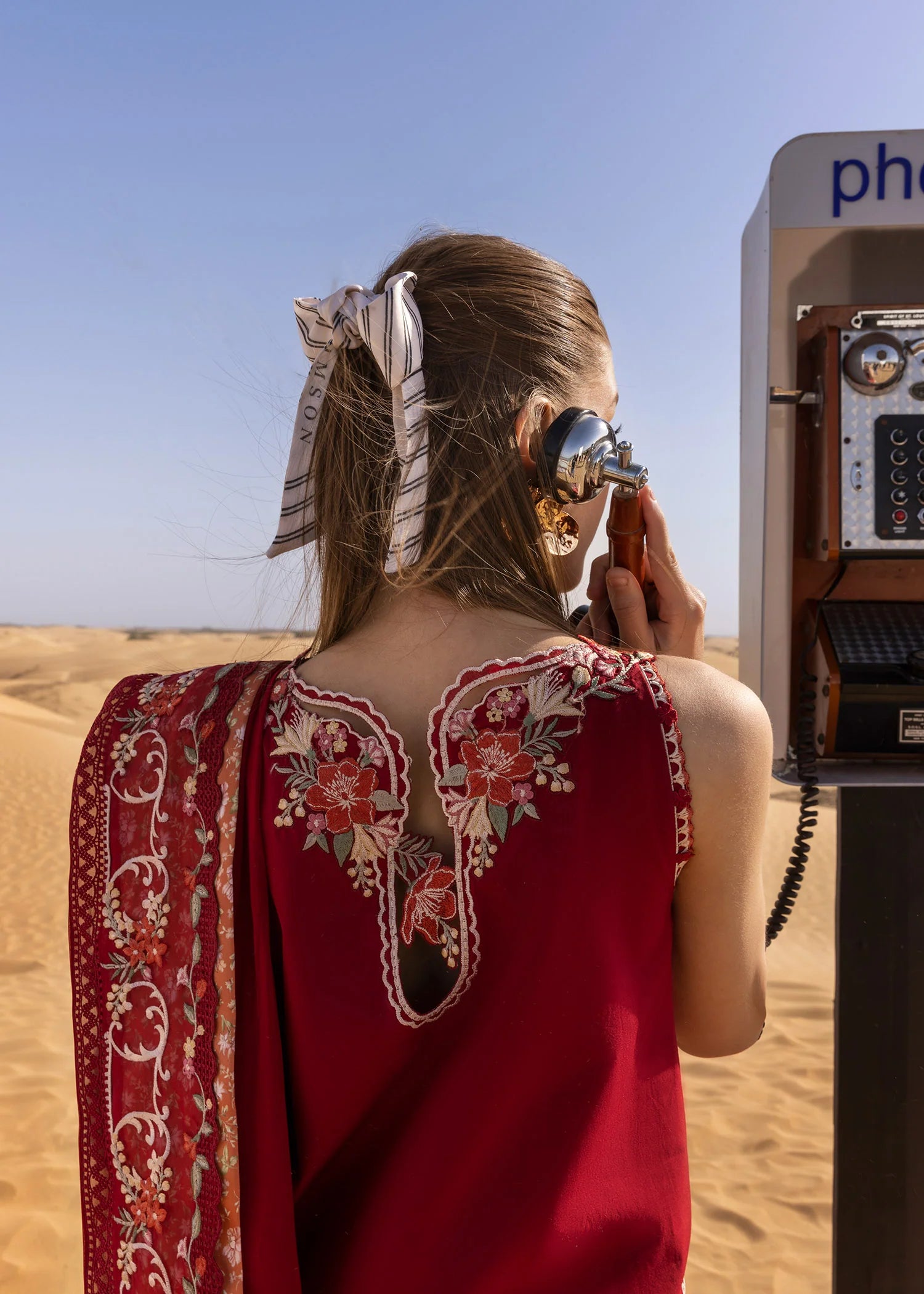 Twirls And Ties - D8 B- Cherry Red Embroidered Lawn Outfit By- Crimson