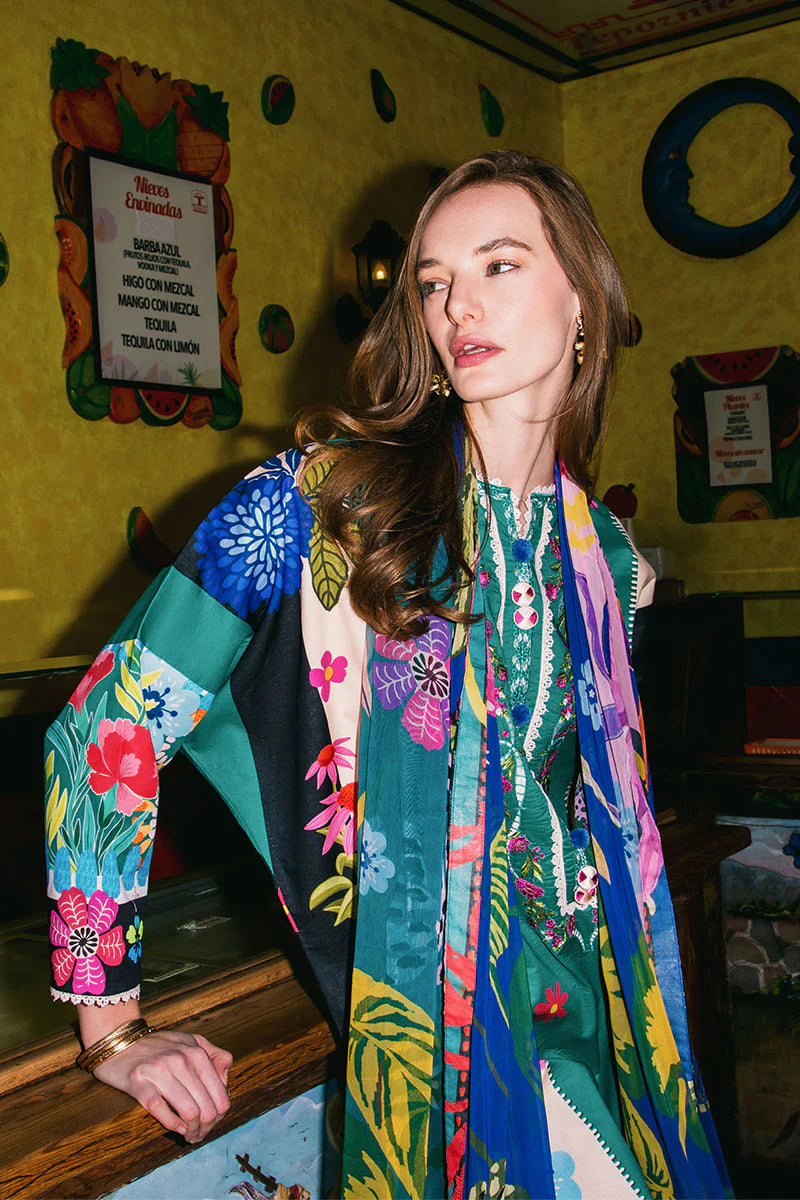 Water Dancers- Teal Lawn Suit with Printed Chiffon Dupatta By- Mushq